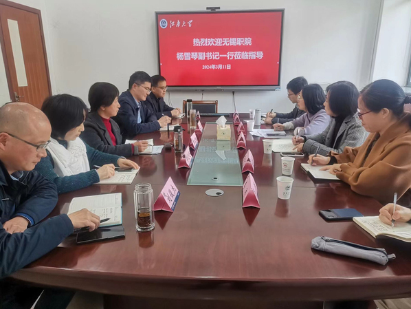 3月11日下午,校党委副书记杨雪琴带领马克思主义学院相关负责人、各教研室主任一行6人赴江南大学调研,交流党建工作、教学科研、团队建设等事宜。