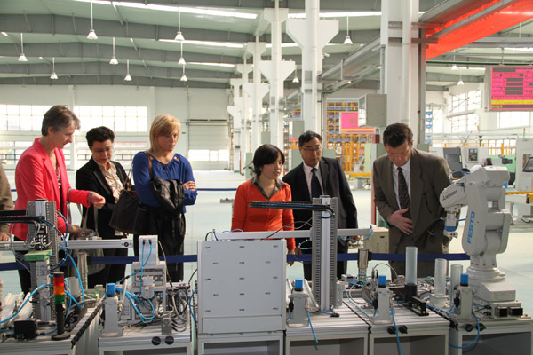 冯渊副校长陪同布朗主席一行参观了智能工厂和汽车SGAVE项目教学现场,布朗主席和拉梅奇院长对永利集团融“设计数字化、装备智能化、生产自动化、管理网络化、商务电子化”为一体和集教科研服务为一体的现代化“RFID智能工厂”表示惊叹,指出永利集团职业教育改革和人才培养模式已紧紧跟上国际先进技术发展趋势。冯渊副校长还向外宾详细介绍了无锡本土历史文化传统,CCID学生海外修学项目经理希伯曼女士等对无锡文化和经济发展产生浓厚兴趣。