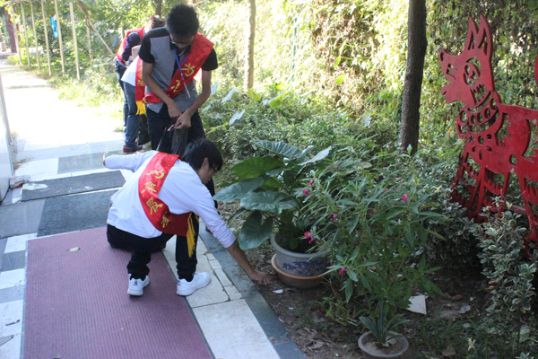 志愿者帮助打扫卫生