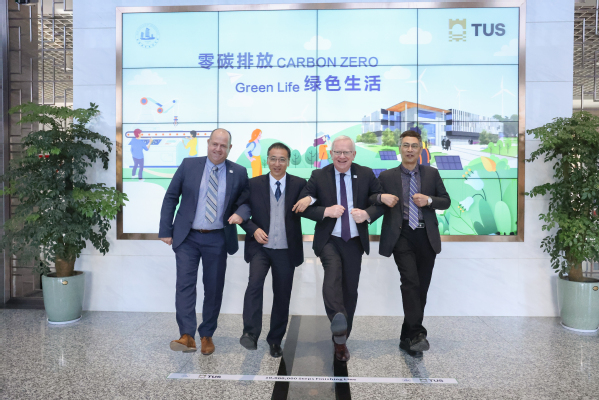 座谈会后,双方校领导共同完成了爱尔兰学院发起“低碳健行先锋计划”活动的一千万步挑战,积极倡导低碳生活和绿色可持续发展理念。随后,文森特校长一行还参观了学校智能工厂、制造加工中心教学区,并与2023级爱尔兰学院新生展开对话交流,就学生提出的关于爱尔兰学习生活的相关问题一一作答,现场响热烈。
