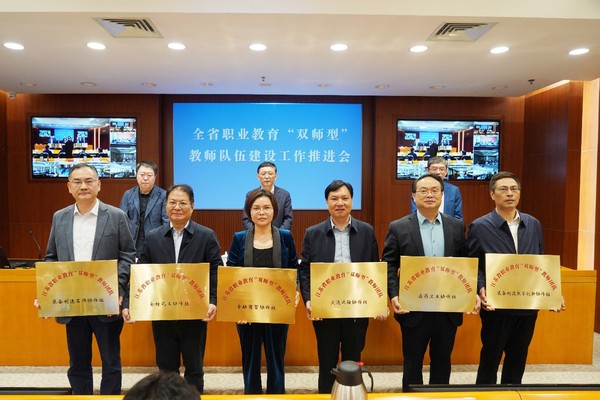 会议宣布成立江苏省职业教育“双师型”教师队伍建设指导中心和江苏省职业教育“双师型”教师认定工作专家委员会,周桂瑾受聘江苏省职业教育“双师型”教师认定工作专家委员会委员,会议为江苏省职业教育“双师型”教师团队12个协作组授牌,永利集团当选江苏省职业教育“双师型”教师团队装备制造教学创新协作组组长单位。