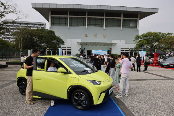 比亚迪汽车技术体验活动在体育馆门前展开。比亚迪汽车作为国产新能源汽车的优秀代表,新能源汽车领导者,现已构建起传统燃油、混合动力、纯电动车全动力产品体系。2015年起,比亚迪新能源汽车连续多年取得全球销量第一,以高颜值、电动化、智能网联为核心发展方向,开启了造车新时代。无锡美迪集团作为深圳比亚迪汽车有限公司在无锡的A级特许经销商,带来了全系列的比亚迪海洋系列和王朝系列的展车,同时开展了新车体验活动。教师们兴致勃勃参加了试驾、咨询等活动。