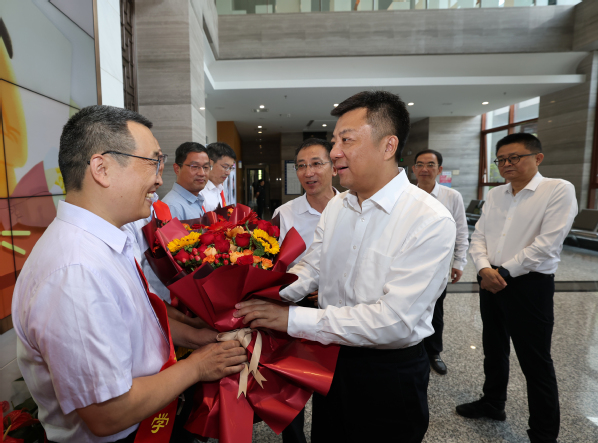 杜小刚向永利集团国家级职业教育教师教学创新团队负责人、江苏省教学名师、江苏省青蓝工程培养对象和学校30年教龄教师代表送上鲜花和节日祝福,“职业教育既关国计也是民生。”杜小刚勉励大家发挥所长、潜心钻研,着力培养更多扎根人民、为国效力的能工巧匠、大国工匠;同时要求学校和有关方面加快谋划建设宜兴校区,全力为广大教职工提供良好工作条件,与城市双向奔赴,积极创建中国特色、世界水平的无锡职业技术大学。