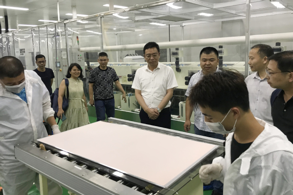 储开峰一行先后实地考察了众能科技公司科研实验室、中试车间和生产产线,全面了解了公司在薄膜光电核心工艺设备、钙钛矿组件和异质结组件等前沿技术的研发生产能力。