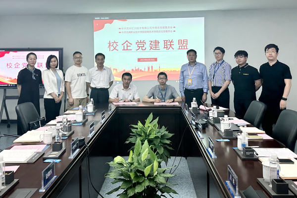 为深入开展学习贯彻习近平新时代中国特色社会主义思想主题教育,6月26日下午,校党委书记龚方红带领控制技术学院党总支书记、电气自动化系骨干教师和学工办辅导员一行8人赴苏州汇川技术有限公司走访调研,并签署校企党建联盟共建协议。