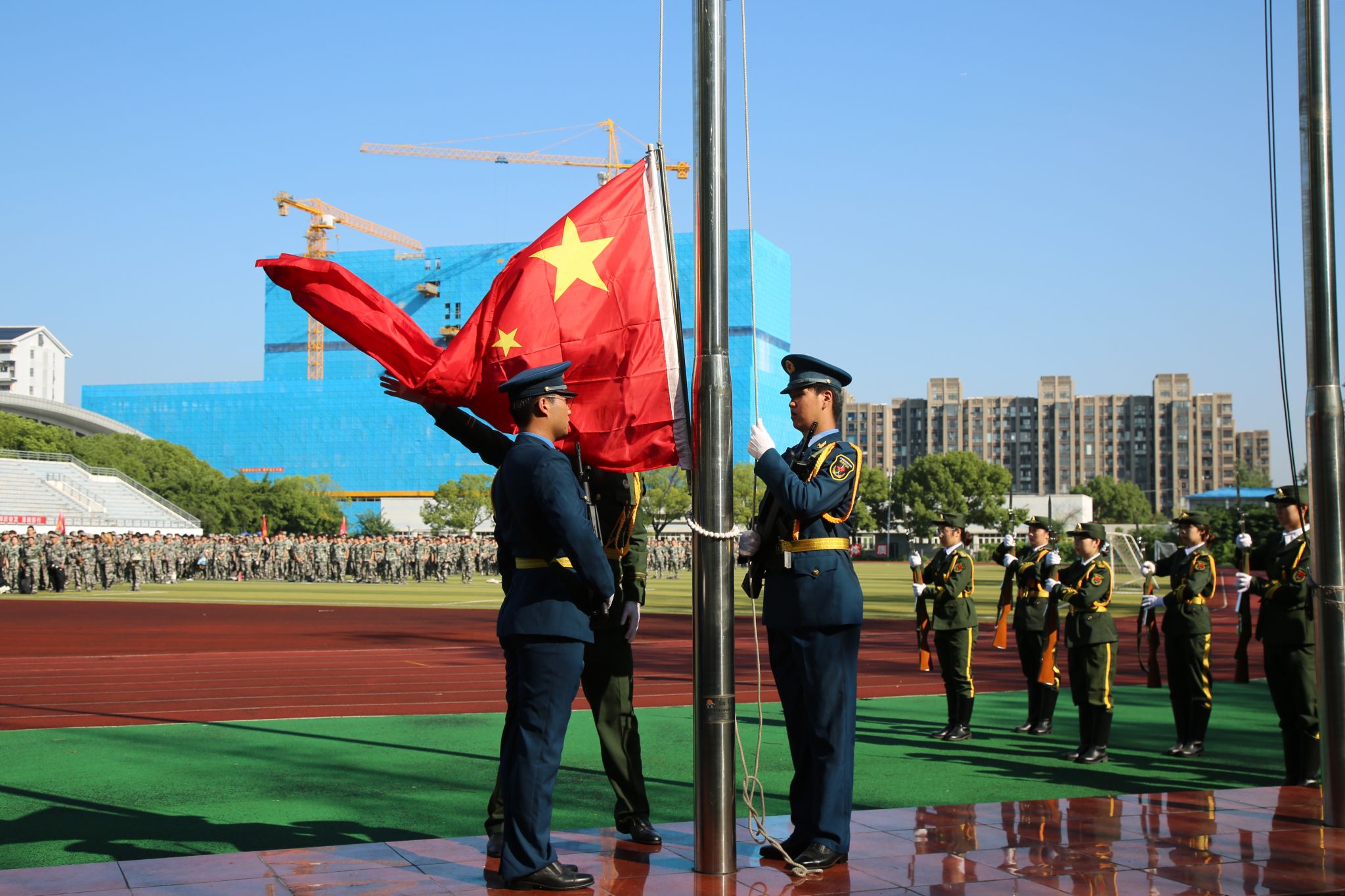 大会在激昂的校歌声中圆满落幕。2025级新生随即投入为期两周的军事训练,开启大学生活的第一课。