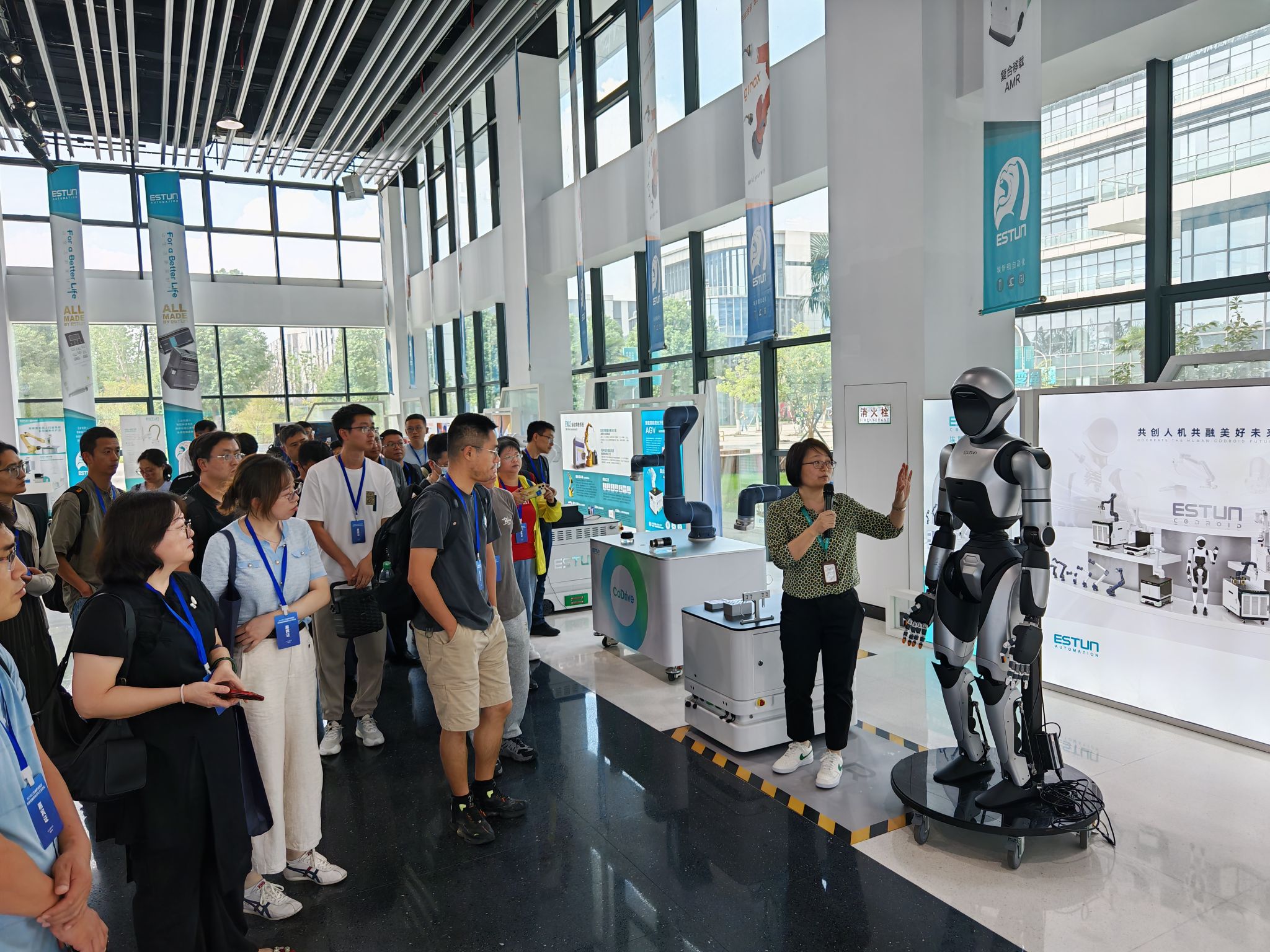 在交流环节中,永利集团及南京信息职业技术学院、南京铁道职业技术学院参会代表分别从科研反哺教学、产教融合智能实践、实训基地建设与课程改革三个方面进行分享与交流。与会人员还参观了南京埃斯顿自动化公司产品展厅与生产车间。