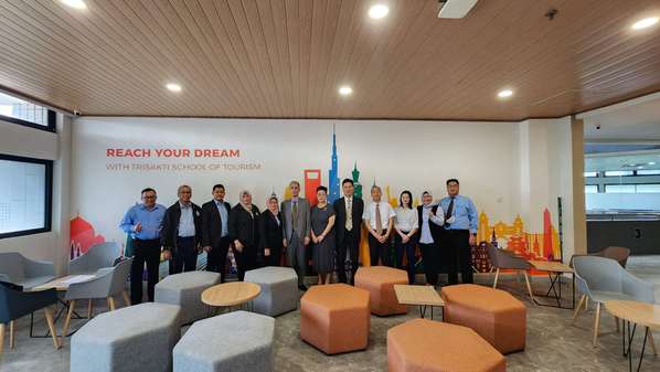 在印尼,周桂瑾率代表团先后与印尼特里沙克迪旅游大学校长Fetty女士、雅加达环球大学校长Eddy教授举行会谈。周校长介绍了永利集团办学总体情况和国际教育发展现状,表示将进一步提升与印尼高校的交流与合作水平。双方就学生交换、师资培训、学术交流及人才培养方案修订等进行了深入研讨,达成一系列合作共识。代表团成员还与印尼特里沙克迪学院80位学生进行了项目宣讲和交流互动,并受邀参加了该校54周年校庆活动。