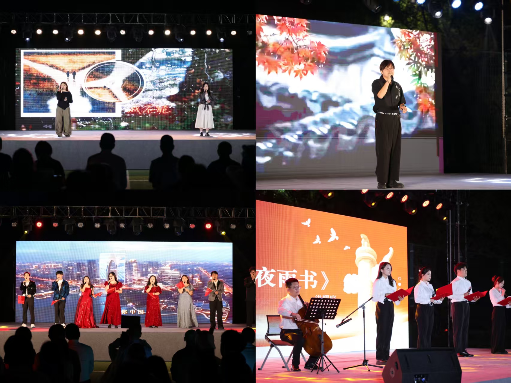 晚会在大学生艺术团充满活力的舞蹈《Jump》中拉开帷幕,现场气氛热烈。随后,组合唱《对等关系》以和谐的演唱展现协作精神,公共艺术教育中心周巍老师指导、主持人协会带来的朗诵《梧桐夜雨书》,在悠扬的大提琴伴奏中,抒发了对祖国的热爱与对未来的美好向往。雷霆老师独唱的《江南》旋律婉转,展现出江南水韵的独特魅力。大学生艺术团的合唱《我爱你中国》以激昂旋律传递真挚爱国情怀,将晚会第一篇章推向高潮,激发了师生的民族自豪感。