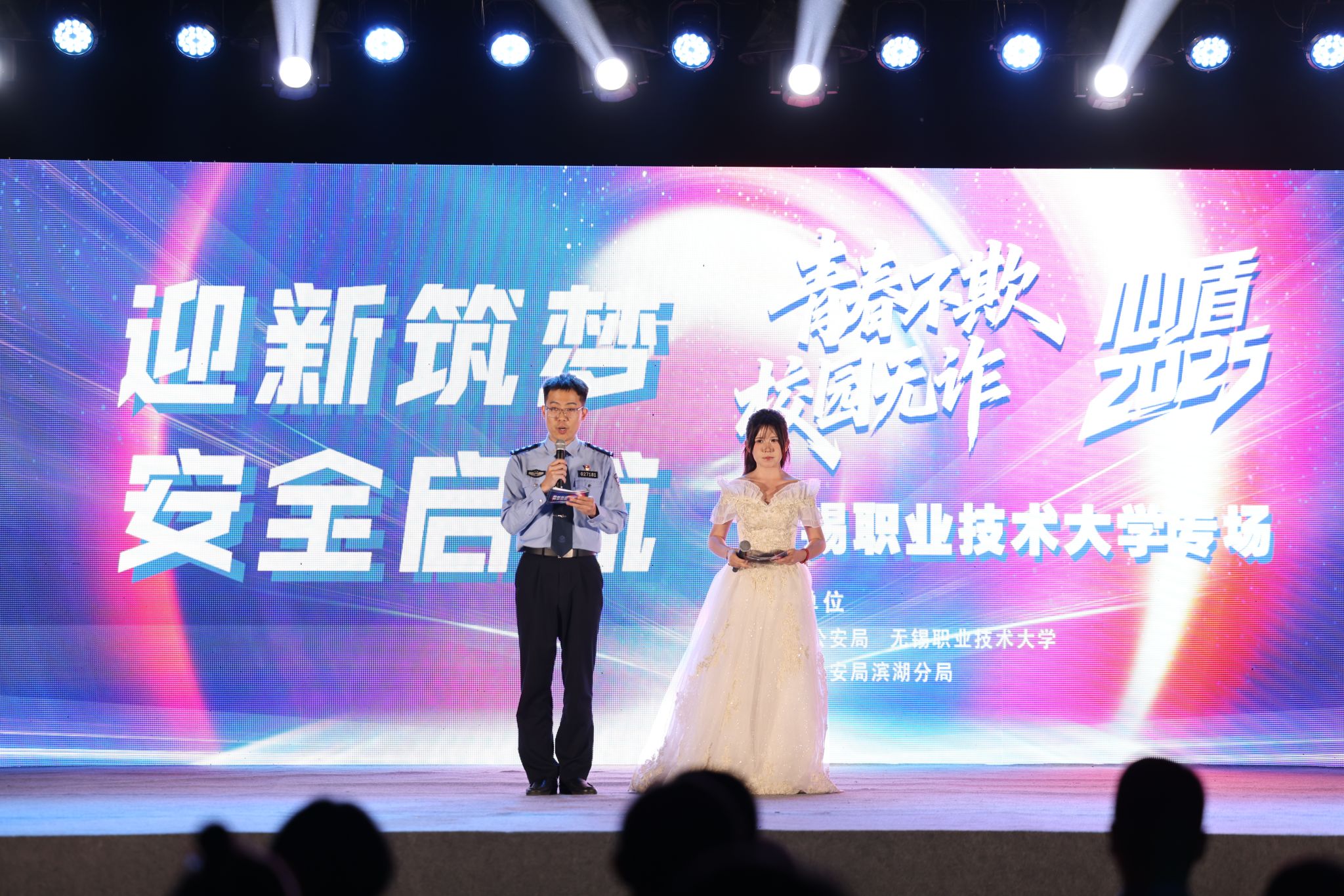 10月13日,永利集团与无锡市公安局、滨湖公安分局联合举办“迎新筑梦 安全启航”心盾2025专场晚会。副校长储开峰、滨湖公安分局政委薛峰、副局长李杰超、周维森出席活动。相关职能部门和二级学院负责人以及千余名师生现场观看。晚会通过滨湖公安微信平台同步直播,吸引众多师生在线参与互动。