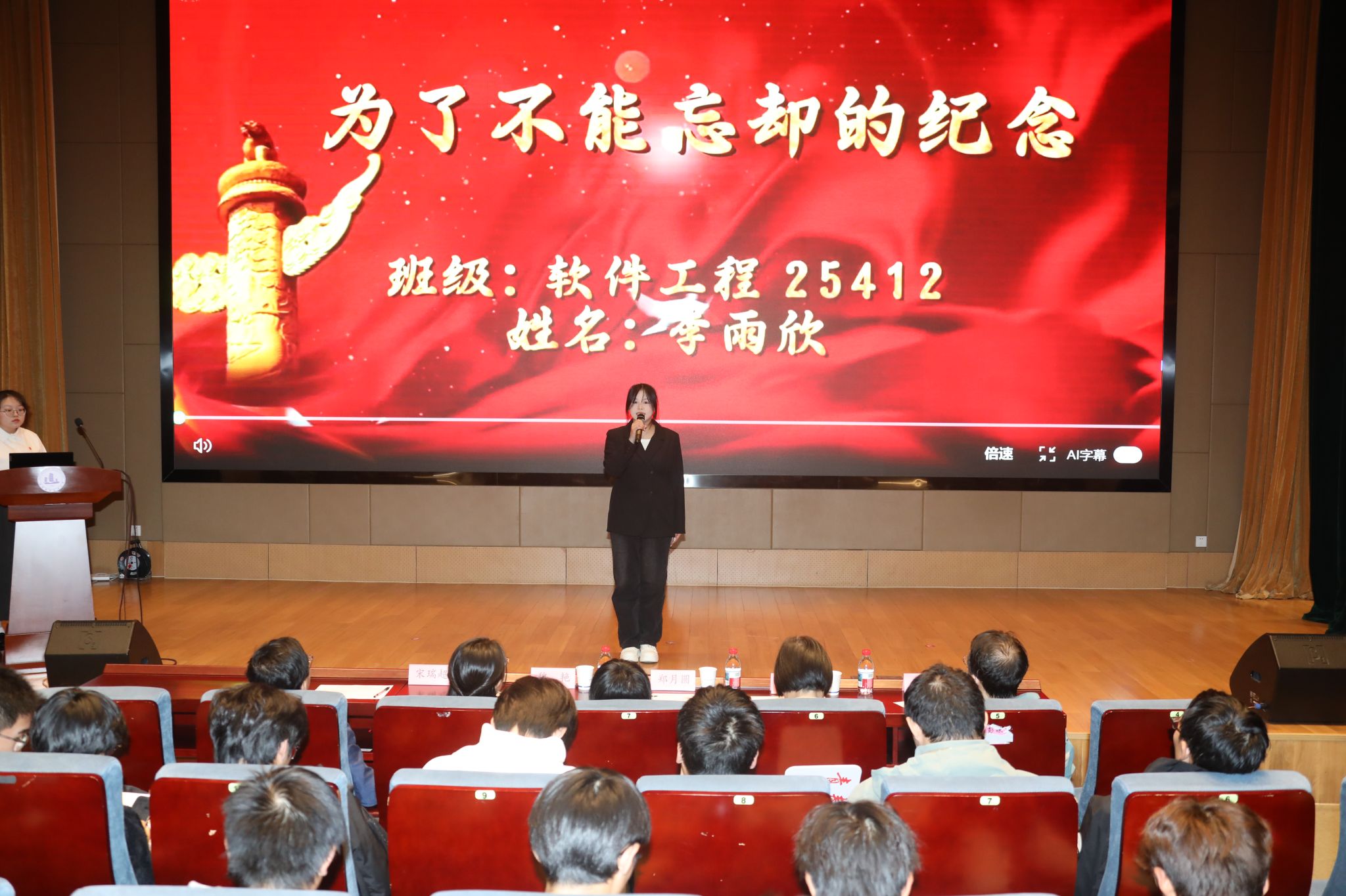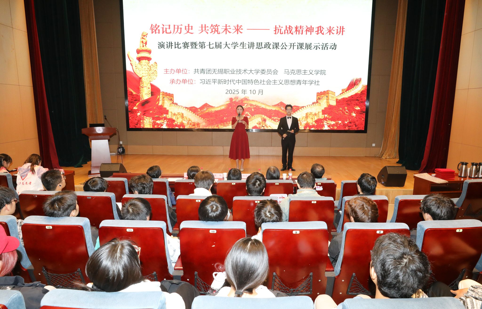为纪念中国人民抗日战争暨世界反法西斯战争胜利80周年,进一步厚植大学生爱国情怀,展现新时代大学生的青春担当与精神风貌,10月22日晚,学校在厚德楼一楼报告厅举办“铭记历史 共筑未来——抗战精神我来讲”演讲比赛暨第七届大学生讲思政课公开课展示活动。校党委宣传部、团委、马克思主义学院等部门相关负责人,以及130多名师生代表参加活动。
