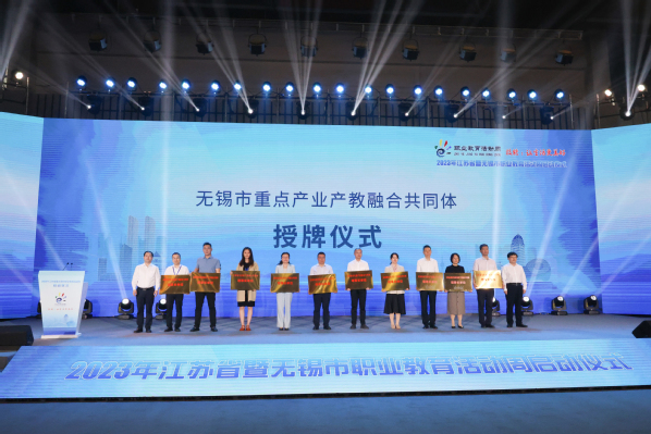 秦咏薪在致辞中指出,近年来无锡积极探索职业教育产教融合、校企合作的有效途径,全市职业学校合作企业达6000余家,校企合作共建产业学院超100家,培育了40个产教深度融合现代化实训基地、22个省级及以上产教融合平台,建成4个全国示范性职业教育集团(产教联盟)、1家全国产教融合型企业和56家省产教融合型企业,职业教育已成为“产业强市”的重要支撑。未来无锡将不断优化职业教育类型定位,持续完善现代职教体系、加大内涵建设、深化产教融合,努力探索职业教育高质量发展的“无锡之路”,为江苏加快建设现代化“教育强省”积极贡献“无锡智慧”和“无锡力量”。