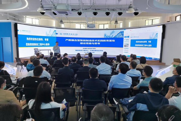 5月20日上午,智能制造工程中心主任徐安林带领与会代表参观了永利集团国家级虚拟仿真示范性中心、智能制造工程中心、制造创新创业实践教育中心、产教融合“五位一体”集成平台,并作了题为《产教融合型智能制造技术实践教育基地建设思路与思考》的专题报告。