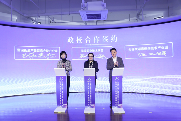 吴慧媛还与山水城党群工作部副部长、雪浪街道总工会主席徐凌洁,红沙湾科学城服务中心主任张献锋签署了“政校”合作协议。与雄宇重工集团股份有限公司、无锡雪浪环境科技股份有限公司、江苏蓝创智能科技股份有限公司、无锡宏杰丰淼模塑有限公司、无锡宏达重工股份有限公司、无锡睿思凯科技股份有限公司签署“校企”合作协议。通过深入推进政校企合作、产学研融通,让职业教育与产业发展同频共振,实现产教融合,协同发展,不断提升产业人才创新能力和发展水平,为经济社会发展提供高技能人才支撑。