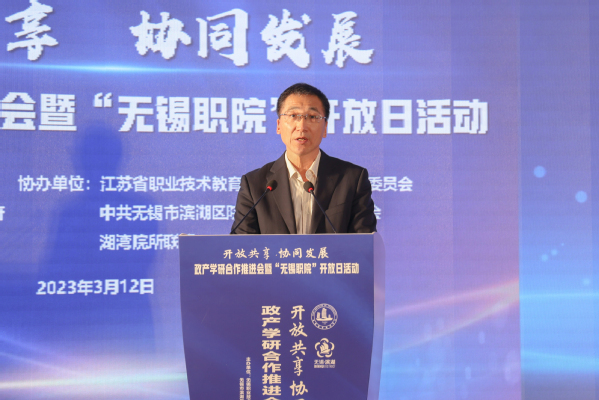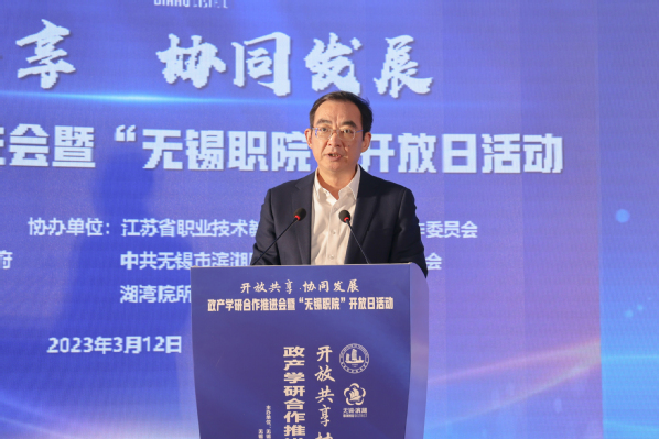侯海峰对本次活动表示高度肯定,指出滨湖区正着力“推动太湖湾科创带引领区”建设,打造“五湾五城”,无锡职院有一批与滨湖产业发展高度契合的专业,是滨湖乃至无锡高质量发展的“创新源头”和“技能人才摇篮”重要输出单位。他指出,深化产教融合、产学研合作,一方面要深化政产学研合作,创新校企协同育人途径;另一方面要完善科创组织机制,促进科研成果转移转化。