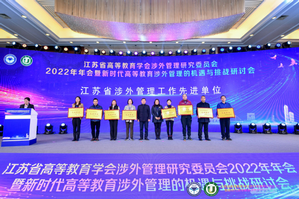 2月23日至24日,江苏省高等教育学会涉外管理研究委员会2022年年会暨新时代高等教育涉外管理的机遇与挑战研讨会在镇江召开,江苏省教育厅国际合作与交流处处长施蕴玉、江苏省高等教育学会秘书长邓志良出席会议并致辞,全省本专科近80所会员单位参会。经大会常务理事会评审并报教育厅同意,永利集团再次获评江苏省涉外管理工作先进单位,凸显了学校在涉外管理工作中的优异成绩。