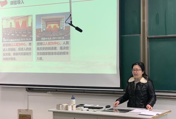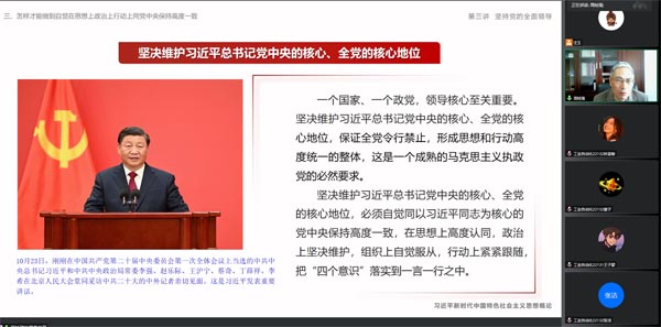 根据马克思主义学院相关教学安排,本学期校领导主要讲授了《坚持党的全面领导》《坚持以人民为中心》《奋进新时代 启航新征程——学习贯彻党的二十大精神》等思政课教学专题。《坚持党的全面领导》专题中,校领导从为什么坚持党的领导,怎样理解党的领导是全面的、系统的、整体的,怎样才能做到自觉在思想上政治上行动上同党中央保持高度一致三个层面进行讲授,让同学们了解中国特色社会主义的本质特征和制度优势;《坚持以人民为中心》这一专题则以视频《人民情怀》导入,让同学们了解人民是创造历史的动力,人民立场是中国共产党的根本政治立场。
