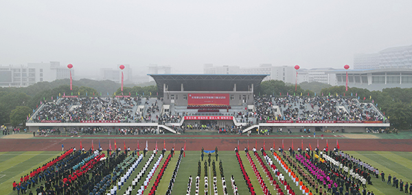 裁判员代表和运动员代表分别宣誓,校党委书记龚方红宣布运动会开幕。在精彩的广播操比赛和团体操表演之后,各项赛事拉开帷幕,为期两天的运动会,共有899名学生运动员参加了29个田径项目的激烈角逐,993名教职工运动员参加了20个项目的角逐。