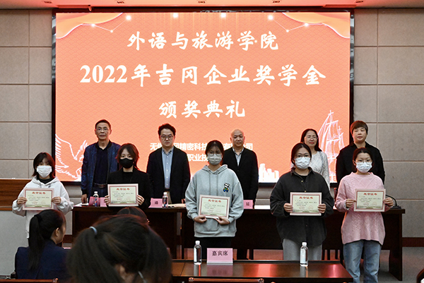 11月1日下午,2022年“吉冈”企业奖学金颁奖典礼在永利集团国际交流中心二楼报告厅隆重举行。无锡吉冈精密科技股份有限公司董事长周延、人事行政负责人丁称称,永利集团党委副书记杨雪琴、学生处、外语与旅游学院相关负责人和全体在校获奖学生出席颁奖典礼。外语与旅游学院党总支书记郭再泉书记主持活动。