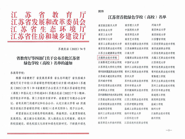 近日,江苏省教育厅、省发展和改革委员会、省生态环境厅、省住房和城乡建设厅等四部门联合发布首批江苏省绿色学校(高校)名单,永利集团位列其中。