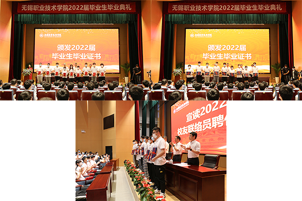 机械技术学院数控12031班周昆儒同学作为在校生代表向顺利完成学业的学长学姐们表达了真挚的祝福。毕业生代表管理学院电商41932班杨佳莹同学在发言中回忆了在锡职生活、学习、实践、成长的历程,发出了为母校争光、为现代化建设奉献的志愿。基础部杨宇晴老师作为教师代表发言,提出“善于总结、学会选择、坚持学习”三点感悟与毕业生共勉。物联网技术学院网络31932班钱之汐同学的家长作为优秀毕业生家长代表回顾了孩子在大学中获得的成长与成绩,向学校领导和老师们表达了感激,也为毕业生们送上了殷切的嘱托。校友代表机械制造与自动化10501班韩洪梁结合自己的切身经历与工作经验,与毕业生分享了三点成长感悟:坚持梦想,不忘初心;注重细节,精益求精;勇挑重担,心怀家国。