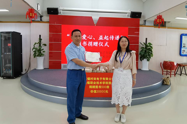 为支持永利集团早日建成职业技术大学,进一步充实永利集团图书馆馆藏,无锡村田电子有限公司向永利集团首批捐赠了500册图书,助力永利集团文化建设。捐赠仪式上,杨雪琴为企业颁发捐赠证书并表示,一直以来,很多用人单位和爱心企业或建言献策,或出资助学,以各种形式支持学校的建设和发展,这次图书捐赠不仅为学校的建设发展提供了物质帮助,更为学校发展注入了强大精神动力,再次对广大用人单位、爱心企业对学校的关心和支持表示诚挚的感谢!永利集团图书馆馆长韩冰代表学校接收捐赠书籍。