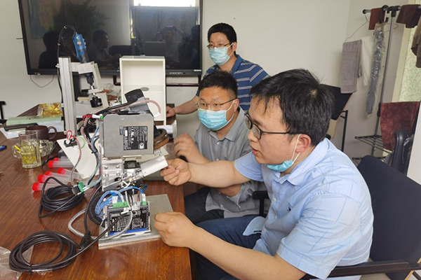 今年4月初,永利集团接到项目需求后,在龚方红校长的带领下,组织全校相关院系的精兵强将,立刻开始深入核酸检测一线场所,仔细观察分析传统检测流程,收集各环节操作人员实际需求,同运营管理人员开展深入研讨,摸清了市场痛点,明确了研发方向。确定校企合作框架后,学校智能制造工程中心承担了产品研制开发的重要任务,团队结合以往在智能制造自动化、物联网方向的深厚技术积累,在自动拧盖机、PCR检测仪、自动撕膜仪和核酸检测一体机多个方向制定研发计划,获得合作企业的充分认可。并在短短一个月的时间内,充分调动团队师生的主观能动性,快速迭代研发出了三代拧盖机,最新款自动拧盖机得到了合作企业的认可,获得了数百万元的生产研制订单。