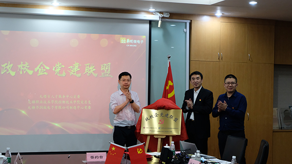 随后,永利集团控制技术学院、无锡市人才服务中心、无锡市华润微电子三方举行了党建联盟结对签约仪式。无锡市人才服务中心党委书记、主任陈曦、永利集团控制技术学院党总支书记曹小兵、华润微电子有限公司制造中心党委副书记、人力资源总监高鹏飞代表三方签署协议,并为政校企党建联盟揭牌。华润微电子有限公司党委副书记、副总裁姚东晗向永利集团及无锡市人才服务中心赠送了具有企业特色的芯片模型。