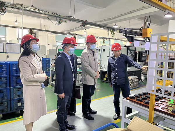 随后,朱爱胜一行走进车间,对企业的生产线和生产环境进行了考察调研,校企双方对发挥各自互补优势,融合企业行业资源和学校学科资源,建立全方位战略合作等进行了深入交流。