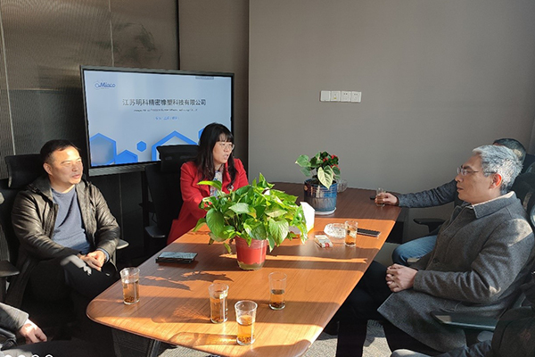 为加强与优秀校友企业的合作力度,12月30日下午,校党委副书记周桂瑾带领管理学院教师一行5人赴无锡江苏明科精密橡塑科技有限公司开展调研,看望工学结合学生,洽谈校企合作,并与企业董事长顾海东、运营总监等相关人员进行座谈交流。