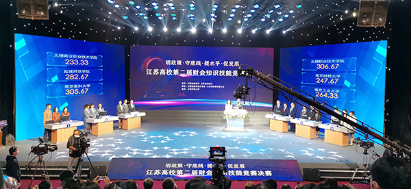 决赛现场展示阶段于11月19日在江苏教育频道演播厅进行,永利集团校长龚方红、副校长强伟纲、财务处相关负责人亲临现场为选手加油助威。现场比赛分为“风采展示”、“争分夺秒”、“同舟共济”、“决胜时刻”四个环节,竞争激烈,永利集团三位选手从容面对,机智应答,在每个环节均取得领先优势,赢得现场一次次掌声和欢呼声,充分彰显了无锡职院风采。