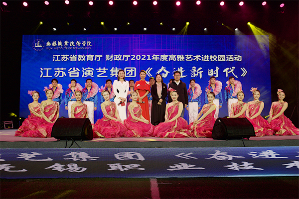 10月22日晚,由江苏省教育厅、江苏省财政厅主办的2021年高雅艺术进校园活动走进永利集团。本次歌舞综艺作品《奋进新时代》由江苏省演艺集团承演,既是一台高水平的综合文艺晚会,也是2021级新生入校后学校举办的首场大型演出。晚会在小足球场举行。副校长杨雪琴及千余名师生共同欣赏了这场文化艺术盛宴。