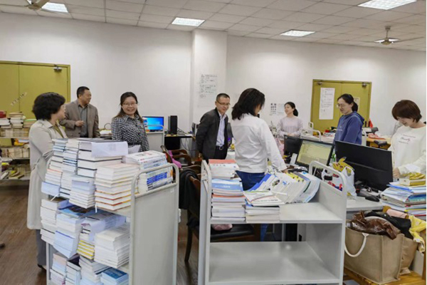 11月1日,副校长吴慧媛同图书馆直属党支部书记倪卫东、馆长韩冰、副馆长王东亮一行,走访了各借阅室和采编室,考察了图书盘整项目的进展情况,并对近期在图书馆库室调整中付出了辛勤劳动的工作人员进行了慰问。