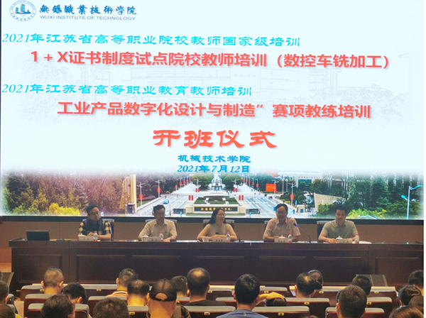 7月12日上午,永利集团机械技术学院承办的国培1+X证书制度试点院校教师培训(数控车铣加工)和省培工业产品数字化设计与制造”赛项教练培训同时开班,来自省内35所高职院校共计70名老师分别参加两个项目的培训。