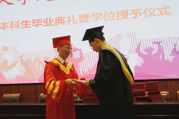江苏大学颜晓红校长为毕业生颁发学位证书、行拨穗礼