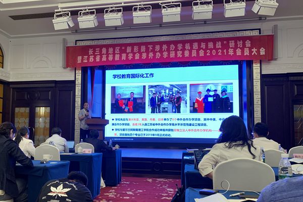 5月27至28日,由江苏省高等教育学会涉外办学研究委员会主办,南京信息工程大学承办的“长三角地区‘新形势下涉外办学机遇与挑战研讨会’暨江苏省高等教育学会涉外办学研究委员会2021年会员大会”在南京成功召开。来自长三角地区三省一市的教育行政部门和100多所高校的200余名代表参会。国际教育学院副院长平毅受邀参加会议并作了经验分享报告,国际教育学院相关人员一同参会。