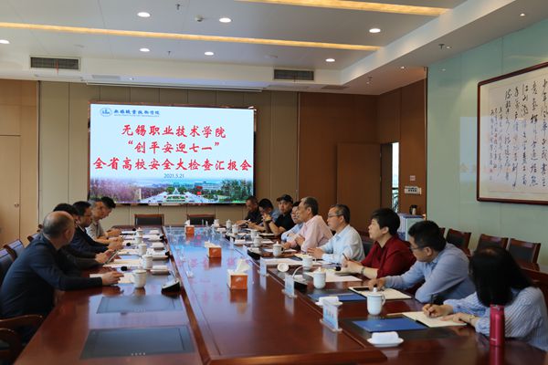 5月21日上午,按照省教育厅统一部署,以江苏航运职业技术学院副院长张忠为组长的全省高校安全大检查第八检查组来永利集团检查指导工作。党委副书记周桂瑾、副校长强伟纲出席汇报会。保卫处、学工处、后勤处、资产处、教务处等部门负责人陪同检查并出席会议。