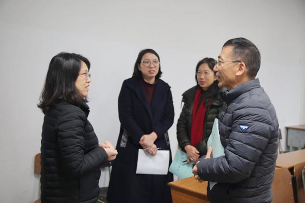 党委书记朱爱胜、教务处处长钱晓忠听了基础部傅小波老师讲授的《应用数学B》课程;校长龚方红、质控部主任姜敏凤听了物联网技术学院肖国玲老师讲授的《微电子概论》课程;党委副书记周桂瑾、教务处副处长王得燕在巡查整个教学运行情况后,听了汽车与交通学院刘涵老师讲授的《民用航空发动机》课程。课后,校领导与任课教师、学生进行了全面交流,了解新学期师生的教学、生活情况。