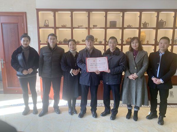 1月15日上午,永利集团龚方红校长带队,走访了沈建强筋纹器紫砂艺术中心,为研究员级高级工艺美术大师沈建强颁发江苏省产业教授证书。