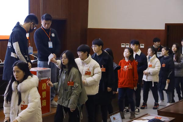在第二次全体会议上,代表们审议和表决通过了《永利集团304am登录第二十次候选人资格审查报告》《永利集团304am登录第二十次学生代表大会选举办法》《永利集团304am登录第十九届学生会工作报告》以及《永利集团304am登录学生会章程》修正案,选举产生永利集团304am登录第二十届学生会主席团。