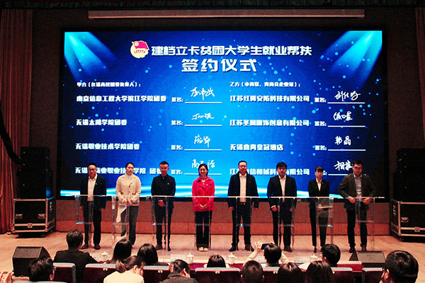 活动由校团委副书记郑月圆主持。团市委联合重点企事业单位、人力资源机构,优选名师,选聘大学生就业导师,开发“职场嘉年华”系列课程,助力青年学子高质量就业,为无锡大学生就业导师颁发聘书。随后,根据市青联、青商会企业家与建档立卡贫困大学生结对工作要求,8家市青联、青商会企业与8所在锡高校团委结对,签署建档立卡贫困大学生就业帮扶协议,为精准帮扶建档立卡贫困大学生实现高质量就业。
