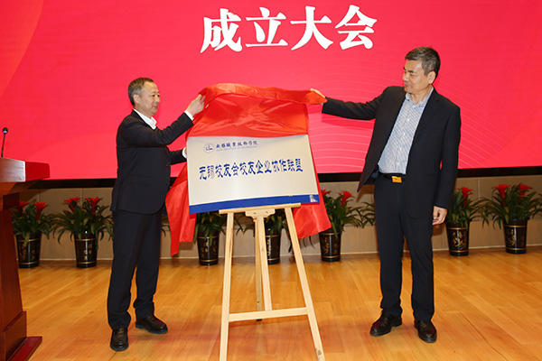 无锡校友会会长沈剑标(左)与永利集团朱爱胜书记共同为联盟揭牌