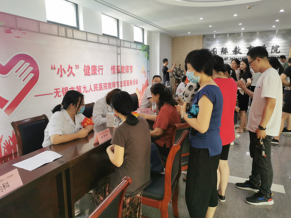 为宣传健康理念、倡导健康生活,9月8日,在第36个教师节来临之际,校团委与校工会联合邀请无锡市第九人民医院组织“名医专家团”来永利集团开展“‘小久’”健康行,情系教师节”志愿义诊和健康讲座活动,为广大教师送上一份特殊的节日礼物。