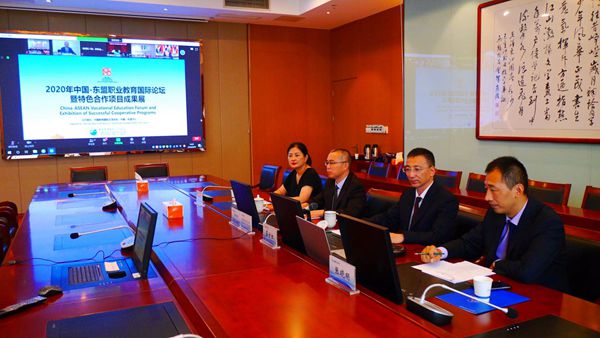 8月26日至27日,由中国教育国际交流协会与中国—东盟中心共同主办的“2020年中国—东盟职业教育国际论坛暨特色合作项目成果展”在线成功举办。来自中国与东盟各国教育行政部门、职业院校、行业企业及有关国际组织的300余名代表参会。永利集团龚方红校长、强伟纲副校长受邀参加会议,国际教育学院相关人员一同参会。