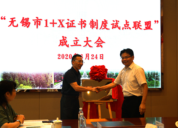 联盟由永利集团向教育局申请组建并任理事长单位。成立大会上,校长龚方红在讲话中阐述了永利集团牵头组建联盟的意义。市教育局高等教育与职业教育处副处长翁爱祥宣读了无锡市教育局“关于同意组建无锡市1+X证书制度试点联盟的批复”,教育局副局长符菊成和永利集团校长龚方红共同为联盟揭牌,市教育局高等教育与职业教育处处长高群向联盟理事长、秘书长、专家组组长等颁发了聘书。