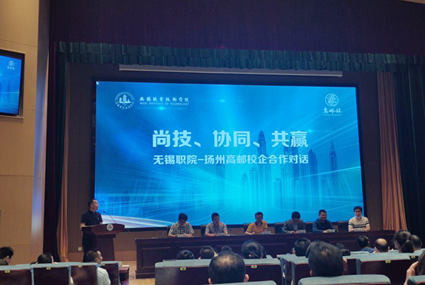 徐以维全面介绍了高邮镇工业发展现状,发展目标,特别就高邮镇企业发展的“痛点”问题作了具体分析。他指出,目前高邮镇企业存在的主要问题:一是规模总量较小,产品层次不高。全镇大部分企业产品附加值较低,仍处于产业链的低端;二是产业结构松散,集聚效应不佳。产业门类多而不全,产业结构散而不实,行业领军企业较少,未能形成明显的集群集聚优势,影响集群发展;三是自主创新能力不足,企业核心竞争力不强。企业普遍存在创新人才不多,研发投入较少,科技平台建设滞后等问题。同时,他指出把本次对话活动作为契机,希望从政府层面,继续加大和无锡职院的合作,无锡职院要为扬州高邮地区不断输出人才和智力支持。