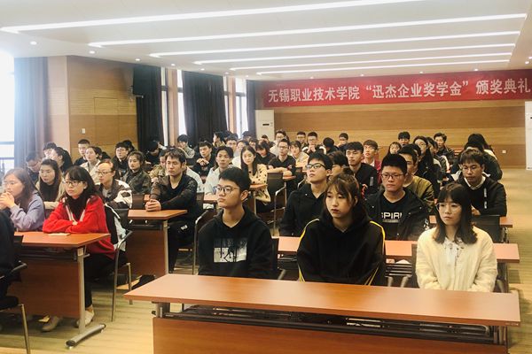 颁奖典礼由学生处副处长徐悦主持。杨雪琴副校长在感谢词中对迅杰积极参与公益事业、勇于承担社会责任的行为表示高度赞赏,并教育获奖学生要对社会、企业怀感恩之心,踏实勤勉,回报学校,奉献社会。随后,由迅杰物流公司副总经理王国明宣布了获奖名单,领导们为获奖学生颁奖,获奖学生代表工商41732班顾文嘉同学发表了获奖感言。