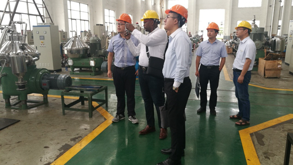 代表团一行首先深入生产车间,公司人力资源科吴正伟科长和外贸部李磊经理陪同代表团看望了现场实习的留学生,并详细介绍了公司主营业务、核心产品分离机、过滤机的制造工艺、产品特色和技术优势。在随后的南非留学生合作培养汇报交流会上,江苏巨能机械有限公司董事长牟富君致欢迎辞,他简要介绍了公司的基本情况、近年来取得的成就以及近期留学生的学习、生活、工作等情况。近年来,巨能机械积极响应国家“一带一路”倡议,努力践行“走出去”的号召,产品远销日本和新加坡、马来西亚等东南亚国家,公司拟在了解南非机械制造业现状以及分离机和过滤机等设备产业应用的前提下,积极拓展非洲市场。牟董事长强调,企业高度重视校企合作,尤其希望加强与永利集团304am登录的紧密合作,进一步深化国际化人才培养和项目合作,为企业参与“一带一路”建设,服务“一带一路”国家人才培养水平,实现互利合作共赢。
