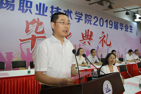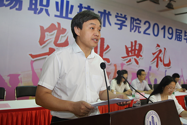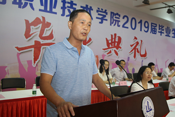 毕业典礼由副校长杨雪琴教授主持,党委组织部部长奚小网宣读了2019届专科毕业生毕业、结业情况,并向经过刻苦学习、顺利毕业的全体同学们表示热烈祝贺。党委宣传部部长刘文平宣读了《关于表彰2019届优秀毕业生的决定》,机械技术学院机制11631班李开等145名同学因在校期间表现突出,荣获“优秀毕业生”称号。龚方红校长为优秀毕业生代表办法了荣誉证书,到场校领导为毕业生代表、校友联络员颁发了毕业证书和聘书。