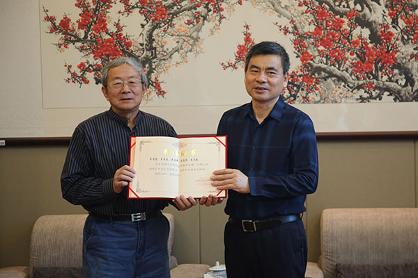朱爱胜书记向吴中伟院士子女颁发捐赠证书